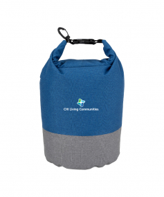 Keeps your items dry and comes in a chic two-tone design. It has a roll top closure with a buckle to connect to other bags and a carabiner clip to connect to a backpack or tether to a raft rope. Made from heathered 300D polyester, it has a 5 liter capacity and can float if dropped in water. Complies with Prop 65. 7" W x 13" H x 7" D