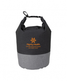 Keeps your items dry and comes in a chic two-tone design. It has a roll top closure with a buckle to connect to other bags and a carabiner clip to connect to a backpack or tether to a raft rope. Made from heathered 300D polyester, it has a 5 liter capacity and can float if dropped in water. Complies with Prop 65. 7" W x 13" H x 7" D