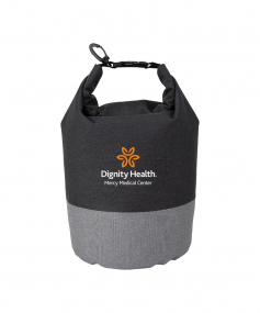 Keeps your items dry and comes in a chic two-tone design. It has a roll top closure with a buckle to connect to other bags and a carabiner clip to connect to a backpack or tether to a raft rope. Made from heathered 300D polyester, it has a 5 liter capacity and can float if dropped in water. Complies with Prop 65. 7" W x 13" H x 7" D