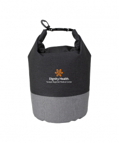 Keeps your items dry and comes in a chic two-tone design. It has a roll top closure with a buckle to connect to other bags and a carabiner clip to connect to a backpack or tether to a raft rope. Made from heathered 300D polyester, it has a 5 liter capacity and can float if dropped in water. Complies with Prop 65. 7" W x 13" H x 7" D