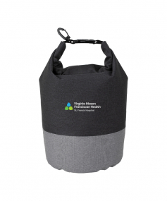 Keeps your items dry and comes in a chic two-tone design. It has a roll top closure with a buckle to connect to other bags and a carabiner clip to connect to a backpack or tether to a raft rope. Made from heathered 300D polyester, it has a 5 liter capacity and can float if dropped in water. Complies with Prop 65. 7" W x 13" H x 7" D