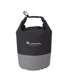 Keeps your items dry and comes in a chic two-tone design. It has a roll top closure with a buckle to connect to other bags and a carabiner clip to connect to a backpack or tether to a raft rope. Made from heathered 300D polyester, it has a 5 liter capacity and can float if dropped in water. Complies with Prop 65. 7" W x 13" H x 7" D