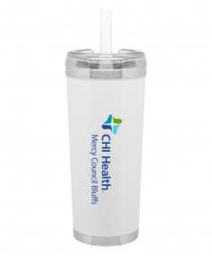 24 oz double wall 18/8 stainless steel thermal tumbler with copper vacuum insulation, stainless steel rim and base, threaded Eastman Tritan lid, snap closure, straw opening, and flexible wide silicone straw.