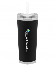 24 oz double wall 18/8 stainless steel thermal tumbler with copper vacuum insulation, stainless steel rim and base, threaded Eastman Tritan lid, snap closure, straw opening, and flexible wide silicone straw.