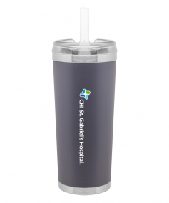 24 oz double wall 18/8 stainless steel thermal tumbler with copper vacuum insulation, stainless steel rim and base, threaded Eastman Tritan lid, snap closure, straw opening, and flexible wide silicone straw.