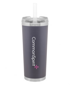 24 oz double wall 18/8 stainless steel thermal tumbler with copper vacuum insulation, stainless steel rim and base, threaded Eastman Tritan lid, snap closure, straw opening, and flexible wide silicone straw.