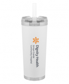 24 oz double wall 18/8 stainless steel thermal tumbler with copper vacuum insulation, stainless steel rim and base, threaded Eastman Tritan lid, snap closure, straw opening, and flexible wide silicone straw.