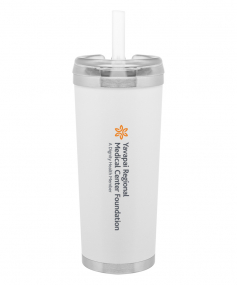 24 oz double wall 18/8 stainless steel thermal tumbler with copper vacuum insulation, stainless steel rim and base, threaded Eastman Tritan lid, snap closure, straw opening, and flexible wide silicone straw.