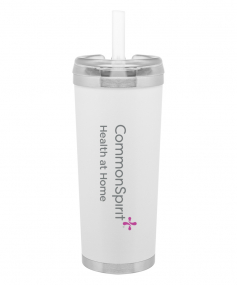 24 oz double wall 18/8 stainless steel thermal tumbler with copper vacuum insulation, stainless steel rim and base, threaded Eastman Tritan lid, snap closure, straw opening, and flexible wide silicone straw.