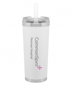 24 oz double wall 18/8 stainless steel thermal tumbler with copper vacuum insulation, stainless steel rim and base, threaded Eastman Tritan lid, snap closure, straw opening, and flexible wide silicone straw.