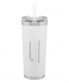 24 oz double wall 18/8 stainless steel thermal tumbler with copper vacuum insulation, stainless steel rim and base, threaded Eastman Tritan lid, snap closure, straw opening, and flexible wide silicone straw.