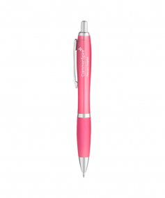 Translucent color curvaceous barrel; shiny silver accents; bold color rubberized comfort grip and smooth flow gel ink. *silver pen has no rubberized grip. It's metallic silver finished.