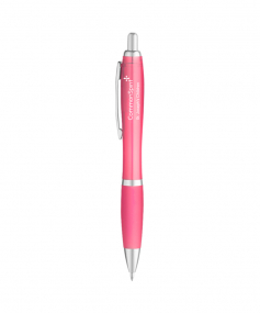 Translucent color curvaceous barrel; shiny silver accents; bold color rubberized comfort grip and smooth flow gel ink. *silver pen has no rubberized grip. It's metallic silver finished.