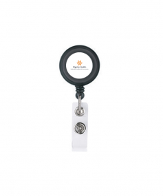 The Delfino round badge holder has a 36" retractable cable and crocodile clip on the back side. Complies with Prop 65. 1 1/4" W x 3 3/8" H x 3/4" D