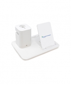 The 3-in-1 charging dock. Tired of fumbling with messy wires and unsafe charging cords? The Docksy is your three-in-one charging solution. Ideal for a nightstand or counter, the Docksy allows you to recharge each of your smart devices at once! 6" W x 8" L x 4.3" H