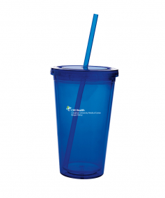 This high-quality 18 oz. sweatproof tumbler with double-wall insulation is perfect for your cold beverages. The screw-on lid comes with a removable drinking straw.