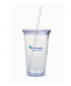 This high-quality 18 oz. sweatproof tumbler with double-wall insulation is perfect for your cold beverages. The screw-on lid comes with a removable drinking straw.