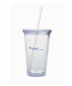 This high-quality 18 oz. sweatproof tumbler with double-wall insulation is perfect for your cold beverages. The screw-on lid comes with a removable drinking straw.