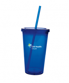 This high-quality 18 oz. sweatproof tumbler with double-wall insulation is perfect for your cold beverages. The screw-on lid comes with a removable drinking straw.