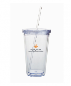 This high-quality 18 oz. sweatproof tumbler with double-wall insulation is perfect for your cold beverages. The screw-on lid comes with a removable drinking straw.
