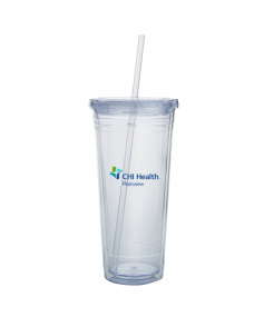 This high-quality 24 oz. sweatproof tumbler with double-wall insulation is perfect for your cold beverages. The screw-on lid comes with a removable drinking straw.