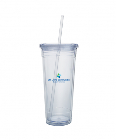 This high-quality 24 oz. sweatproof tumbler with double-wall insulation is perfect for your cold beverages. The screw-on lid comes with a removable drinking straw.
