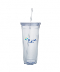 This high-quality 24 oz. sweatproof tumbler with double-wall insulation is perfect for your cold beverages. The screw-on lid comes with a removable drinking straw.