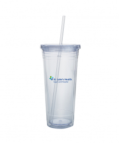 This high-quality 24 oz. sweatproof tumbler with double-wall insulation is perfect for your cold beverages. The screw-on lid comes with a removable drinking straw.