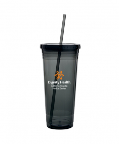 This high-quality 24 oz. sweatproof tumbler with double-wall insulation is perfect for your cold beverages. The screw-on lid comes with a removable drinking straw.