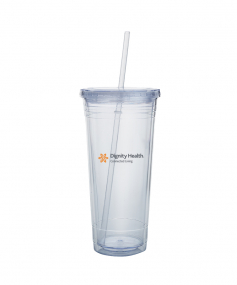 This high-quality 24 oz. sweatproof tumbler with double-wall insulation is perfect for your cold beverages. The screw-on lid comes with a removable drinking straw.