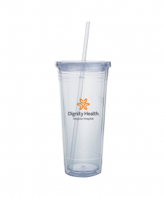This high-quality 24 oz. sweatproof tumbler with double-wall insulation is perfect for your cold beverages. The screw-on lid comes with a removable drinking straw.