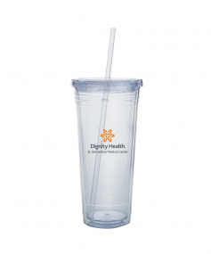 This high-quality 24 oz. sweatproof tumbler with double-wall insulation is perfect for your cold beverages. The screw-on lid comes with a removable drinking straw.