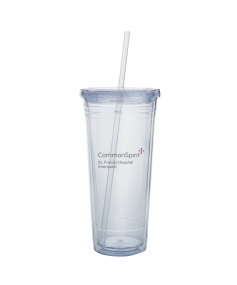This high-quality 24 oz. sweatproof tumbler with double-wall insulation is perfect for your cold beverages. The screw-on lid comes with a removable drinking straw.