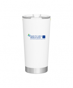 20 oz double wall 18/8 stainless steel thermal tumbler with vacuum insulation, and clear acrylic push-on swivel lid. Hand wash recommended. Do not microwave. Complies with FDA, Prop 65. 7.125" H x 3.75" W