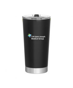 20 oz double wall 18/8 stainless steel thermal tumbler with vacuum insulation, and clear acrylic push-on swivel lid. Hand wash recommended. Do not microwave. Complies with FDA, Prop 65. 7.125" H x 3.75" W