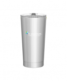 20 oz double wall 18/8 stainless steel thermal tumbler with vacuum insulation, and clear acrylic push-on swivel lid. Hand wash recommended. Do not microwave. Complies with FDA, Prop 65. 7.125" H x 3.75" W