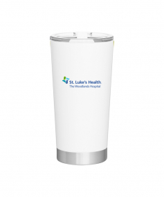 20 oz double wall 18/8 stainless steel thermal tumbler with vacuum insulation, and clear acrylic push-on swivel lid. Hand wash recommended. Do not microwave. Complies with FDA, Prop 65. 7.125" H x 3.75" W