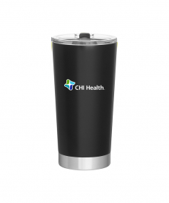 20 oz double wall 18/8 stainless steel thermal tumbler with vacuum insulation, and clear acrylic push-on swivel lid. Hand wash recommended. Do not microwave. Complies with FDA, Prop 65. 7.125" H x 3.75" W
