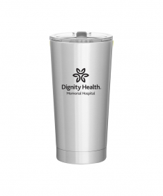 20 oz double wall 18/8 stainless steel thermal tumbler with vacuum insulation, and clear acrylic push-on swivel lid. Hand wash recommended. Do not microwave. Complies with FDA, Prop 65. 7.125" H x 3.75" W