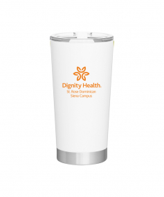 20 oz double wall 18/8 stainless steel thermal tumbler with vacuum insulation, and clear acrylic push-on swivel lid. Hand wash recommended. Do not microwave. Complies with FDA, Prop 65. 7.125" H x 3.75" W