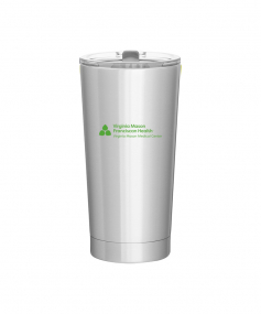20 oz double wall 18/8 stainless steel thermal tumbler with vacuum insulation, and clear acrylic push-on swivel lid. Hand wash recommended. Do not microwave. Complies with FDA, Prop 65. 7.125" H x 3.75" W