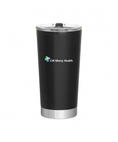 20 oz double wall 18/8 stainless steel thermal tumbler with vacuum insulation, and clear acrylic push-on swivel lid. Hand wash recommended. Do not microwave. Complies with FDA, Prop 65. 7.125" H x 3.75" W