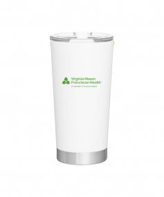 20 oz double wall 18/8 stainless steel thermal tumbler with vacuum insulation, and clear acrylic push-on swivel lid. Hand wash recommended. Do not microwave. Complies with FDA, Prop 65. 7.125" H x 3.75" W
