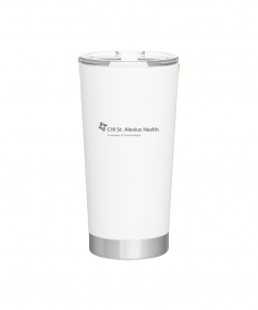 20 oz double wall 18/8 stainless steel thermal tumbler with vacuum insulation, and clear acrylic push-on swivel lid. Hand wash recommended. Do not microwave. Complies with FDA, Prop 65. 7.125" H x 3.75" W