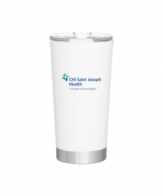 20 oz double wall 18/8 stainless steel thermal tumbler with vacuum insulation, and clear acrylic push-on swivel lid. Hand wash recommended. Do not microwave. Complies with FDA, Prop 65. 7.125" H x 3.75" W