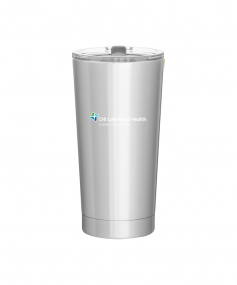 20 oz double wall 18/8 stainless steel thermal tumbler with vacuum insulation, and clear acrylic push-on swivel lid. Hand wash recommended. Do not microwave. Complies with FDA, Prop 65. 7.125" H x 3.75" W