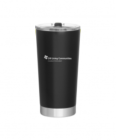 20 oz double wall 18/8 stainless steel thermal tumbler with vacuum insulation, and clear acrylic push-on swivel lid. Hand wash recommended. Do not microwave. Complies with FDA, Prop 65. 7.125" H x 3.75" W