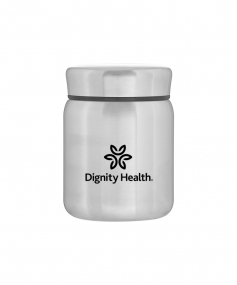 16.9 oz double wall 18/8 stainless steel thermal food container with copper vacuum insulation, matching threaded lid, threaded insulated lid, and rubber bottom. Individual gift box. Hand wash recommended. Do not microwave. Complies with FDA, Prop 65. 5.25" H x 3.875" W