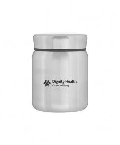 16.9 oz double wall 18/8 stainless steel thermal food container with copper vacuum insulation, matching threaded lid, threaded insulated lid, and rubber bottom. Individual gift box. Hand wash recommended. Do not microwave. Complies with FDA, Prop 65. 5.25" H x 3.875" W