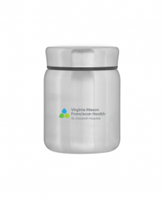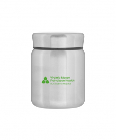 16.9 oz double wall 18/8 stainless steel thermal food container with copper vacuum insulation, matching threaded lid, threaded insulated lid, and rubber bottom. Individual gift box. Hand wash recommended. Do not microwave. Complies with FDA, Prop 65. 5.25" H x 3.875" W